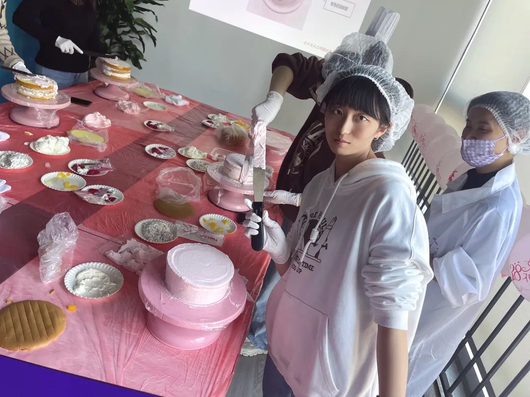 經(jīng)過一小時(shí)的制作,一個(gè)個(gè)可愛兼具雅致的蛋糕就“新鮮出爐”啦。大家對彼此的作品給予欣賞與夸贊,現(xiàn)場匯成一片歡聲笑語。